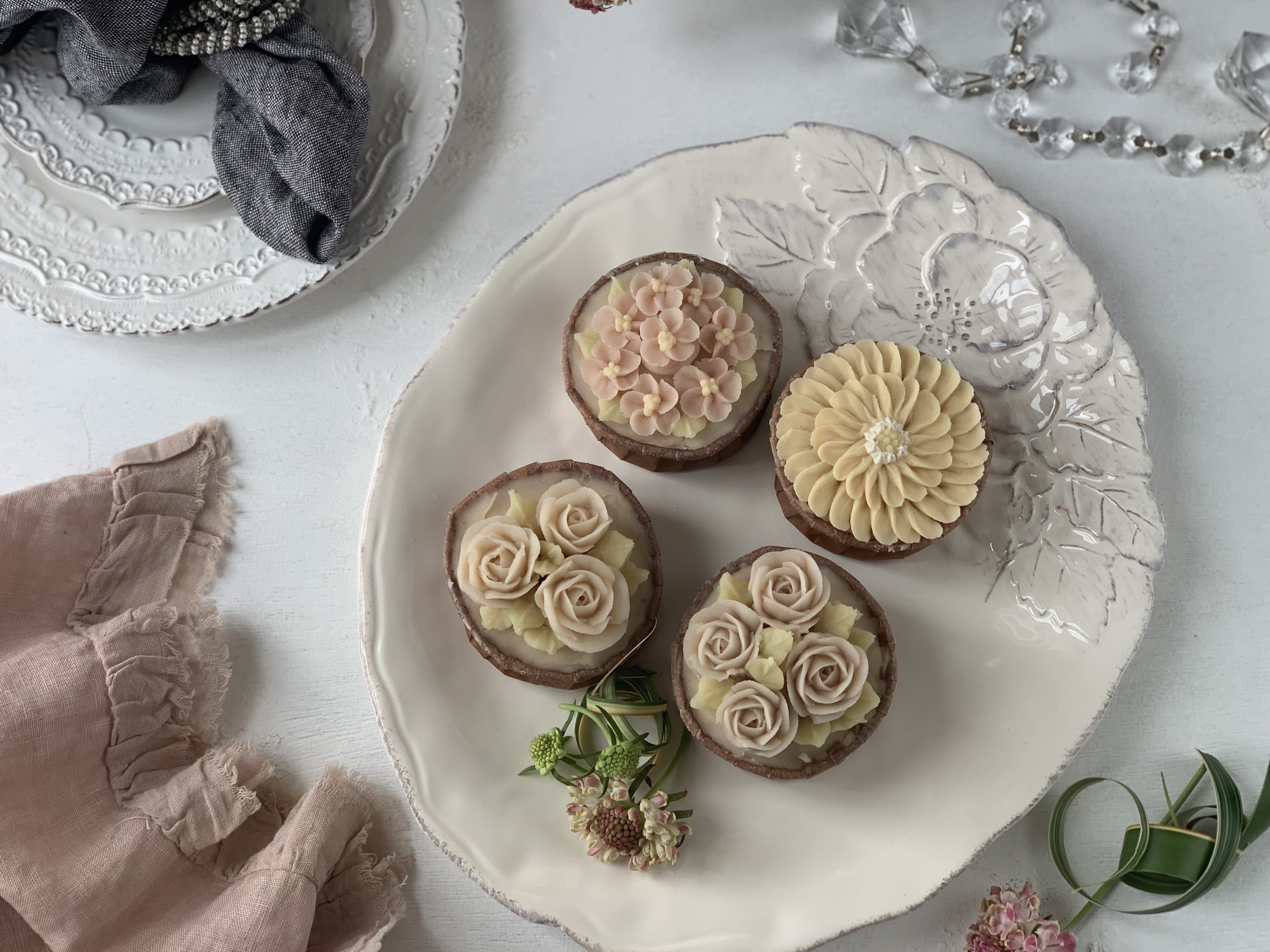フラワーアートケーキ体験レッスン料金 4200円(材料費込み) 制作する作品 カップケーキ(3個) 所要時間:2時間